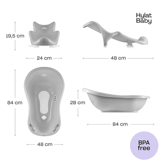 Wanienka z fotelikiem, matą, odpływem i termometrem Hylat Baby - szara FRIENDS